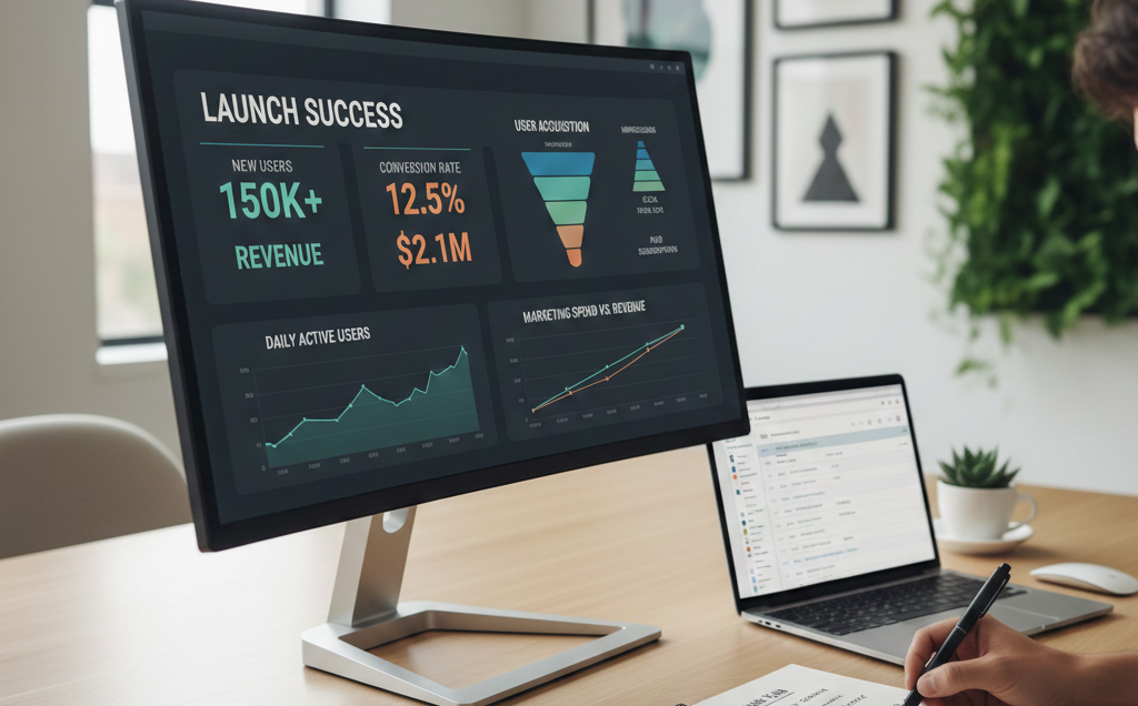 Create visual dashboards where stakeholders (product, marketing, executives) can see launch metrics at a glance. Ensure metrics link to business goals: activation rate, conversion rate, retention, revenue, engagement. - Define decision points/triggers